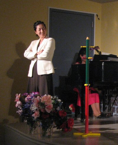 這時Pinkerton小姐卻在門外偷看到, 而竊笑著.