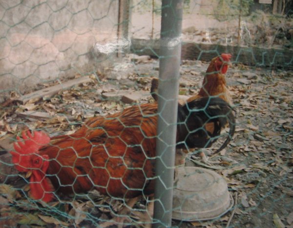 雞是標準農場動物, 每天生很多蛋, 根本不用去買蛋了, 媽媽都做成鹹雞蛋. 這些雞裡面有一對烏骨雞, 夏天拖著那堆毛不知道會不會很熱: