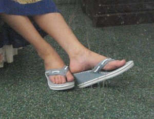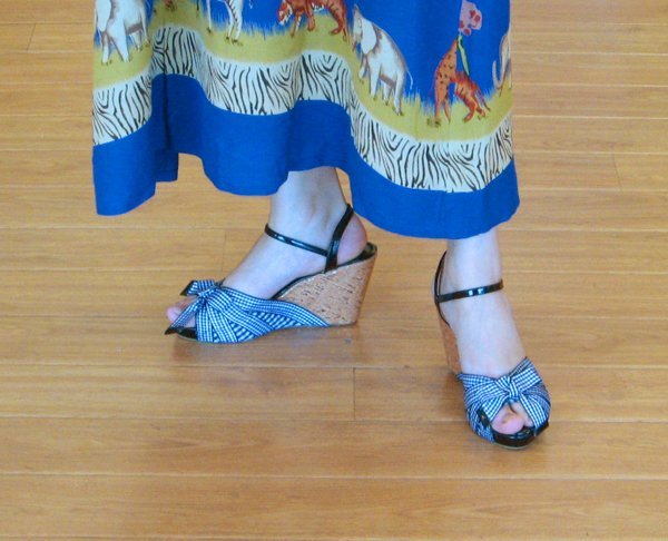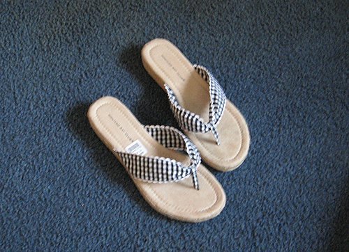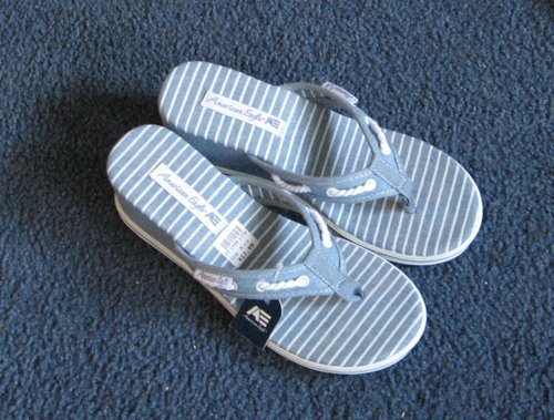 媽媽一直聒聒叫地唸說她家四周很多螞蟻, 不能只穿平底拖鞋去外面走, 我又拒穿包腳的, 最後折衷到Walmart買了一雙厚底海綿拖鞋, 穿起來軟軟很舒服. 沒想到穿上才10分鐘, 我有急事從樓上跑下樓梯時, 一邊就連底一起裂開斷掉了! 幸虧Walmart是無條件退錢, 之後我們改到Payless買了比較牢固的, 不過因為較笨重, 我沒帶回紐約: