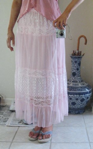 這件粉紅長裙則是在佛州逛跳蚤市場以15美元買到的, 我最喜歡這種裙子!