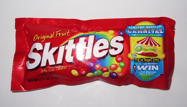 Skittles是美國老牌糖果, 長得很像M&M's, 不過都是水果口味, 比軟糖硬又有嚼勁, 可惜只有5種口味: