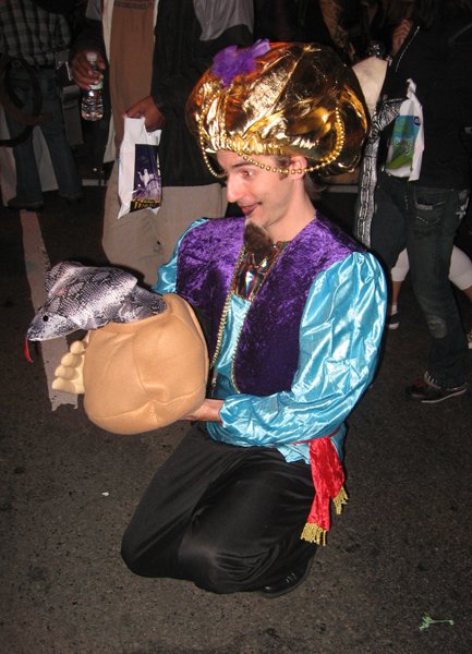 我們算是比較晚到, 8點後才加入遊行, 想必前面很多奇裝異服都錯過了T_T 來看看我拍到成果吧! 正妹很多喔! 首先是親切的印度吹蛇人: