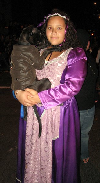 抱著狗狗一起遊行的小公主(狗不會重嗎?):
