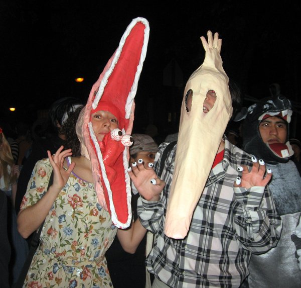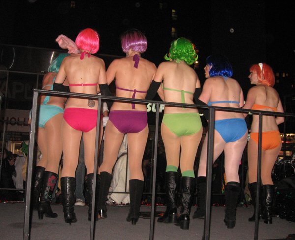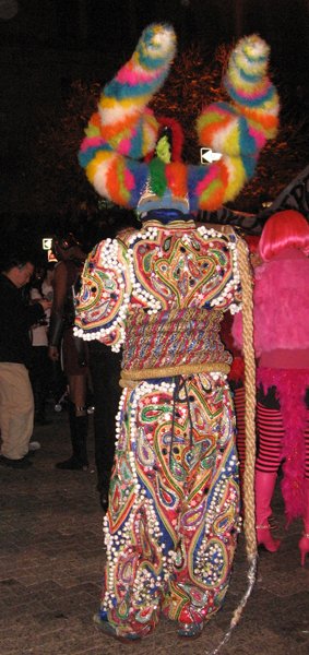 一路上還又不少花車, 完全令人想起台灣的電子花車, 只差沒脫衣舞而已XD 下面這團是所謂比基尼巫婆:
