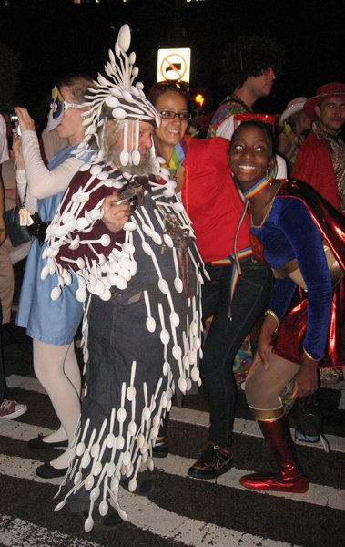 記得去年紐約萬聖節大遊行, 我只有跟Viivan一起參加, 今年卻熱鬧很多! 有Monica夫婦跟小兒子, 還有來自加州的FG網友金滿夫婦, 加上剛認識的兩位年輕網友莊軒跟皮皮, 遊行完還多找了兩位也是FG的網友Dorian和小明喵一起到韓國城吃宵夜