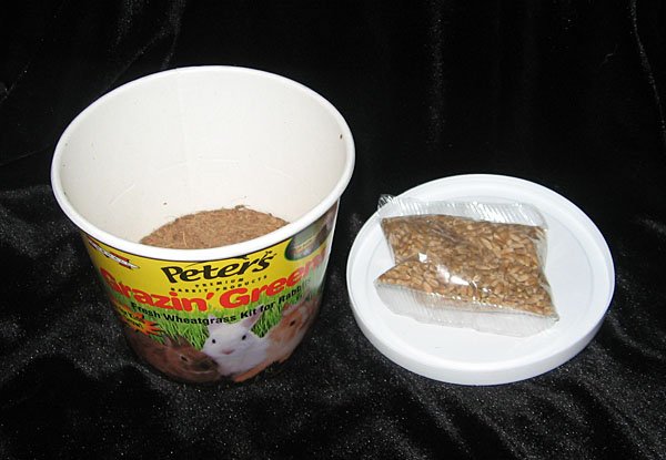一個禮拜多前我在寵物店買到一盒孝敬兔子用的小麥草DIY種植組Peter's Grazin' Greens Wheat Grass Kit, 定價6美元多. 我在台灣的倉鼠網站常看到說給牠們吃小麥草當點心很營養, 就買回家種種看, 關於種小麥草的資訊, 下面兩個網誌都有詳細介紹: