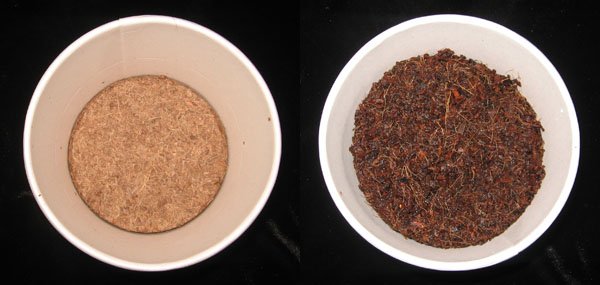 上網查資料以後, 才發現小麥草種子其實很便宜, 買這種DIY組其實不划算, 不過那個培養土可以重複使用還好. 另外小麥草只是給鼠鼠當點心, 一次不用種太多. 鼠友的網誌建議種子先泡水一晚再種, 可加速發芽. 當時我還沒看到這種資訊, 直接看盒子上的說明, 先加滿水讓培養土吸飽膨脹: