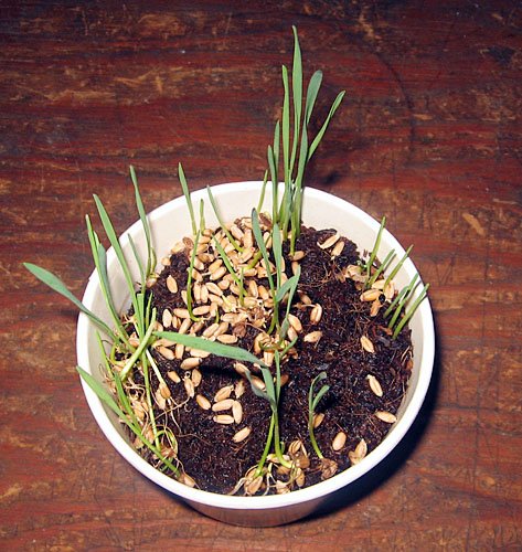 每株長到約10公分就可以從離根部約1.5公分處剪斷, 拿給鼠鼠吃, 被剪的小麥草還會繼續成長, 一株可以收成三次才拔起來丟棄.