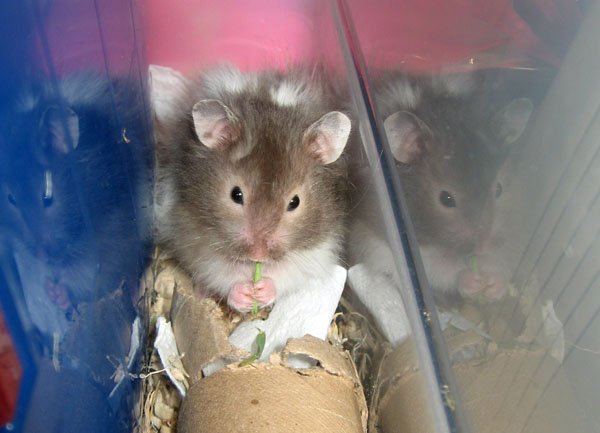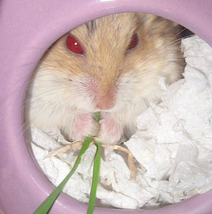小麥草果然對鼠鼠的口味, 小子手捧著吃的樣子:
