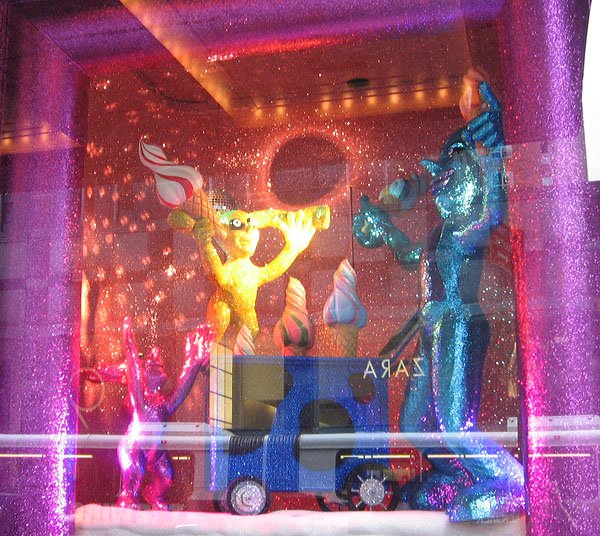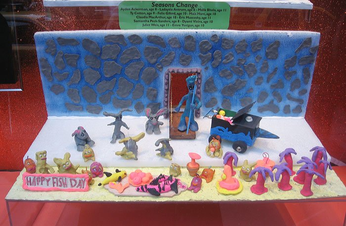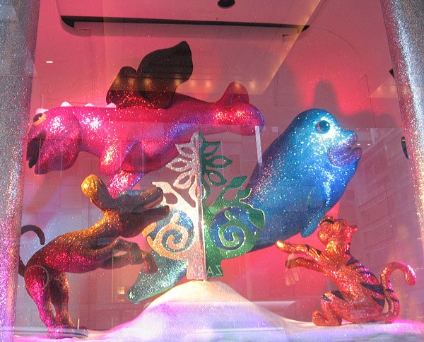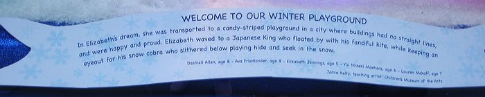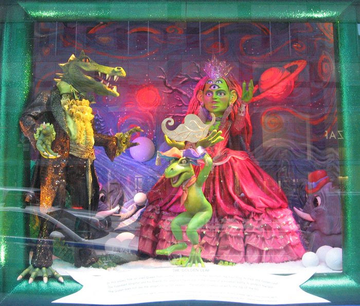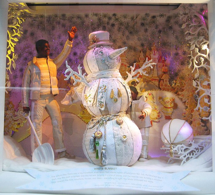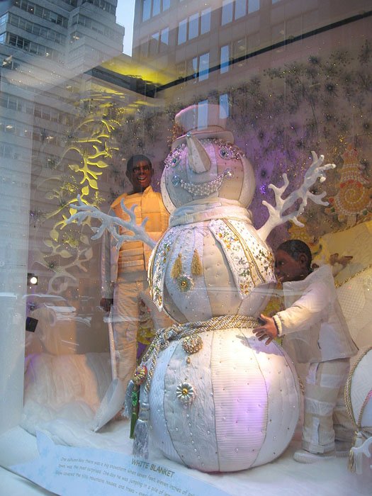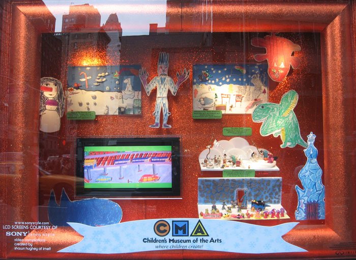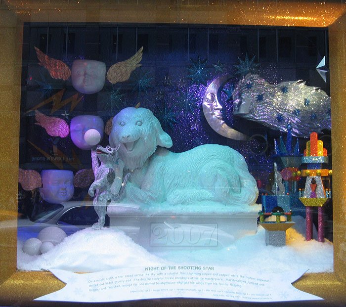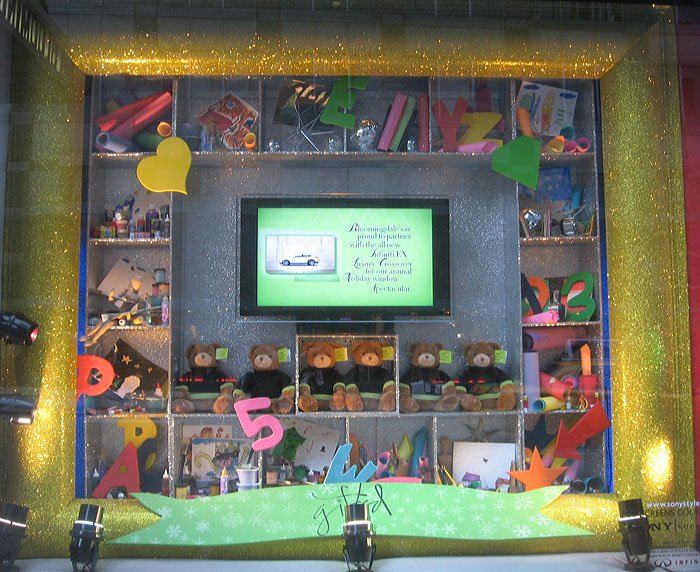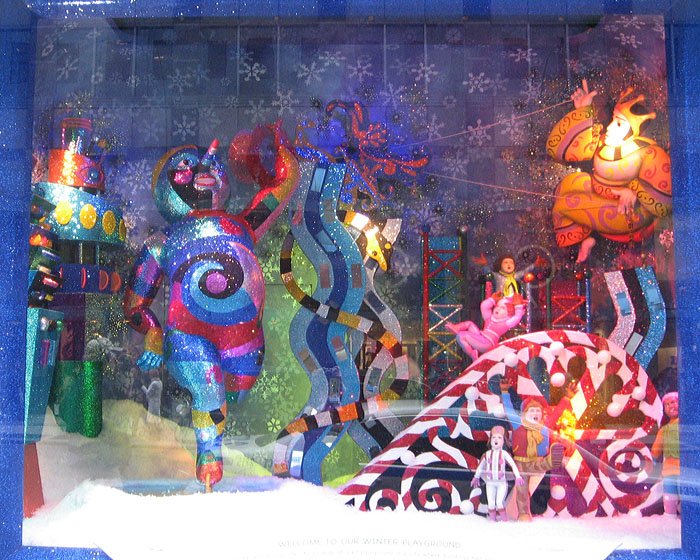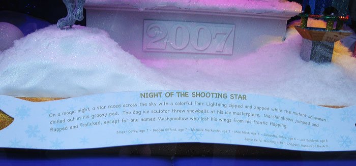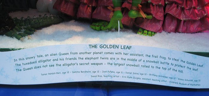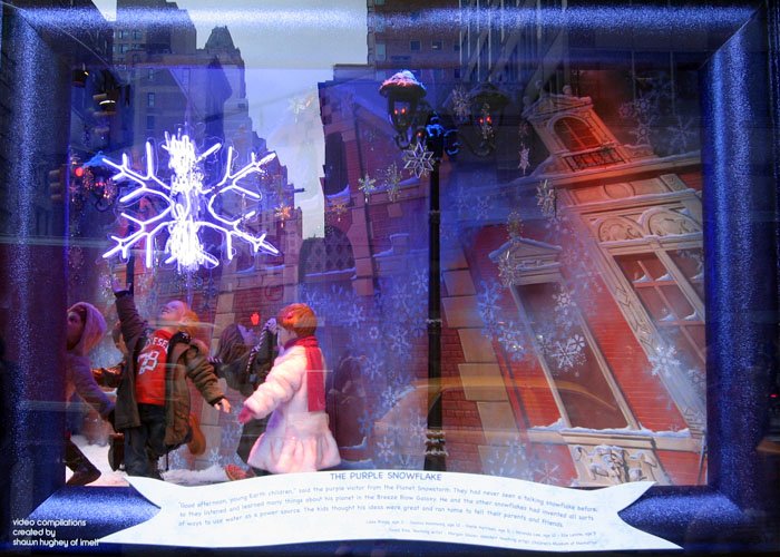 Bloomingdale's百貨公司的聖誕櫥窗主題叫做'Tis the Season to Be Gifted/這是天才的季節, 是與兒童藝術博物館和兒童曼哈頓博物館合辦的, 請了很多小朋友發揮想像力創作畫畫或雕塑, 再選出最優秀的作品實現成每個櫥窗的內容, 首先是孩子們遇見外星雪花的場景: