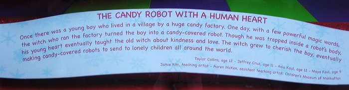 然後是一系列童話般動態情景, 這是有人性的糖果機器人感化了孤單老巫婆的故事: