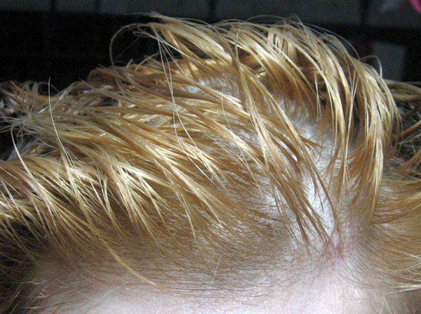 這次我讓漂白劑停留至少半小時才沖掉, 連髮根都徹底漂成淡金色了: