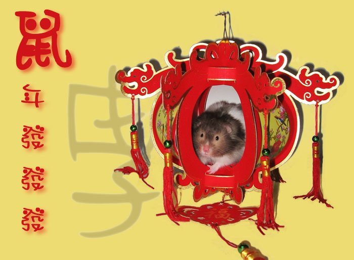 這幾天一直想給哈姆們拍過年風格的藝術照, 今天在中國城晃一圈, 從99分錢店買到可愛的燈籠裝飾, 正適合當道具! 我奶奶就是屬鼠, 所以到了鼠年突然又想念起奶奶了. 對了, 今年應該會因為鼠年的關係特別流行養老鼠, 如果逛到這個網誌的朋友想養的話, 請你們務必要先做足功課跟評估喔! 雖然看起來是團小小的毛球, 但也是無價的生命, 養牠就請讓牠幸福!